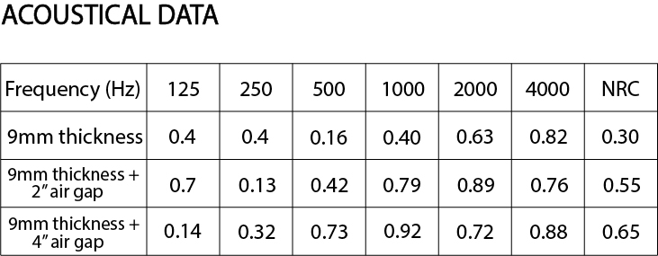 Noise Absorption Coefficient: NRC 0.8 (NRC 0.9 with 50mm cavity)